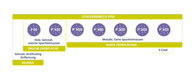→ Körnungen von P80 bis P320 für das Schleifen von Metall-, E-Coat- und Füllerschliff